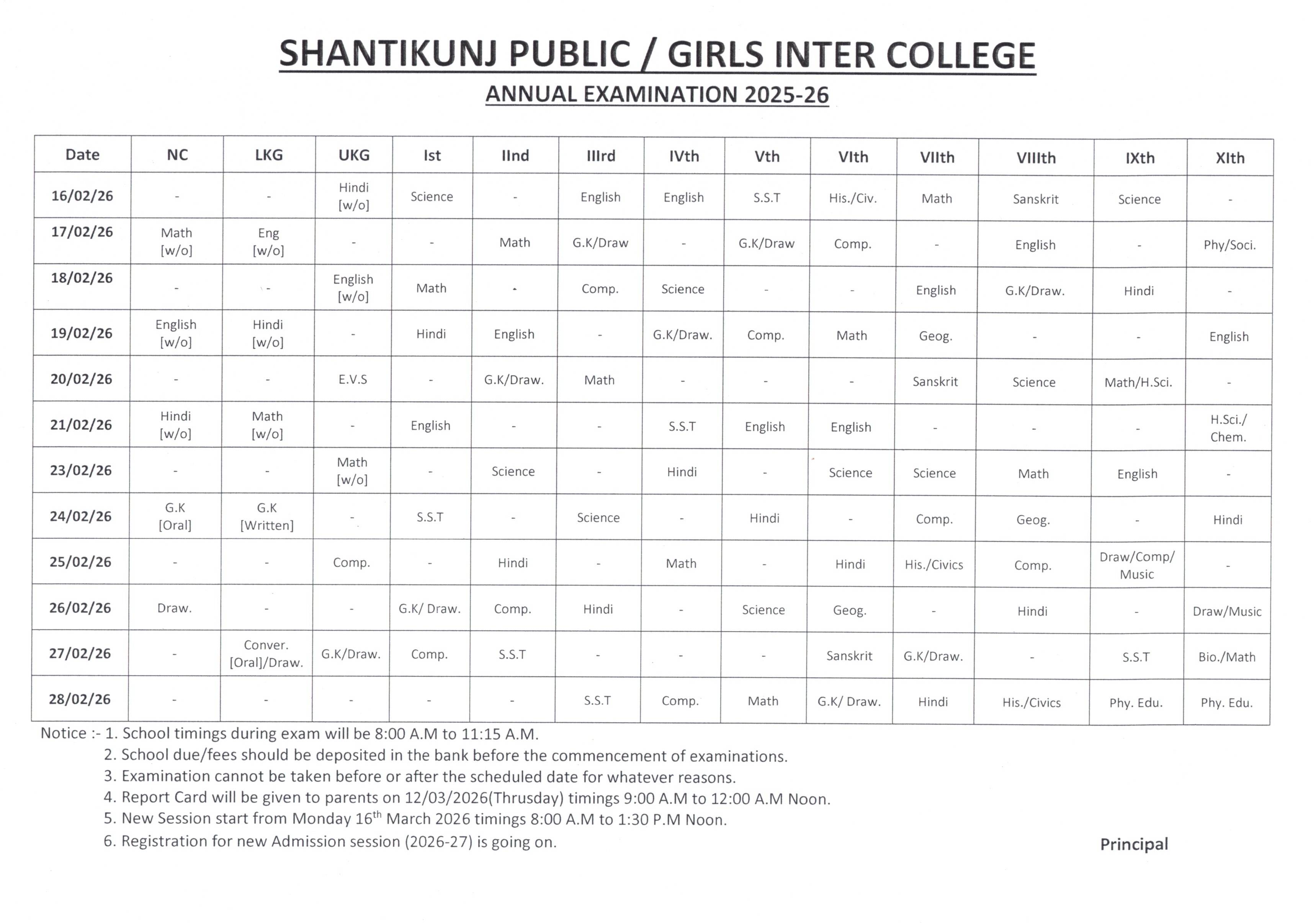 SHANTIKUNJ PUBLIC /GIRLS INTER COLLEGE